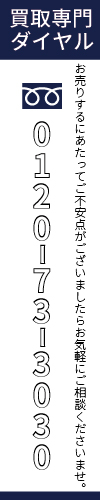 ※2013年2月21日施行の特定商取引法改正に伴い、当社の出張買取サービスが一部継続困難になりました。詳細はお問い合わせくださいませ。